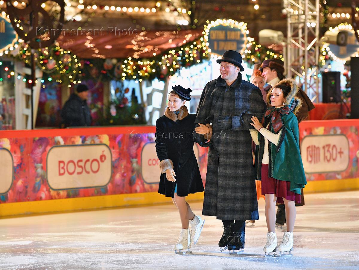 Вечеринка в честь празднования 130-летия Главного универсального магазина (ГУМ) на ГУМ-катке на…