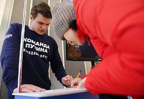 Пункт сбора подписей в поддержку самовыдвижения Владимира Путина на выборы президента России в…