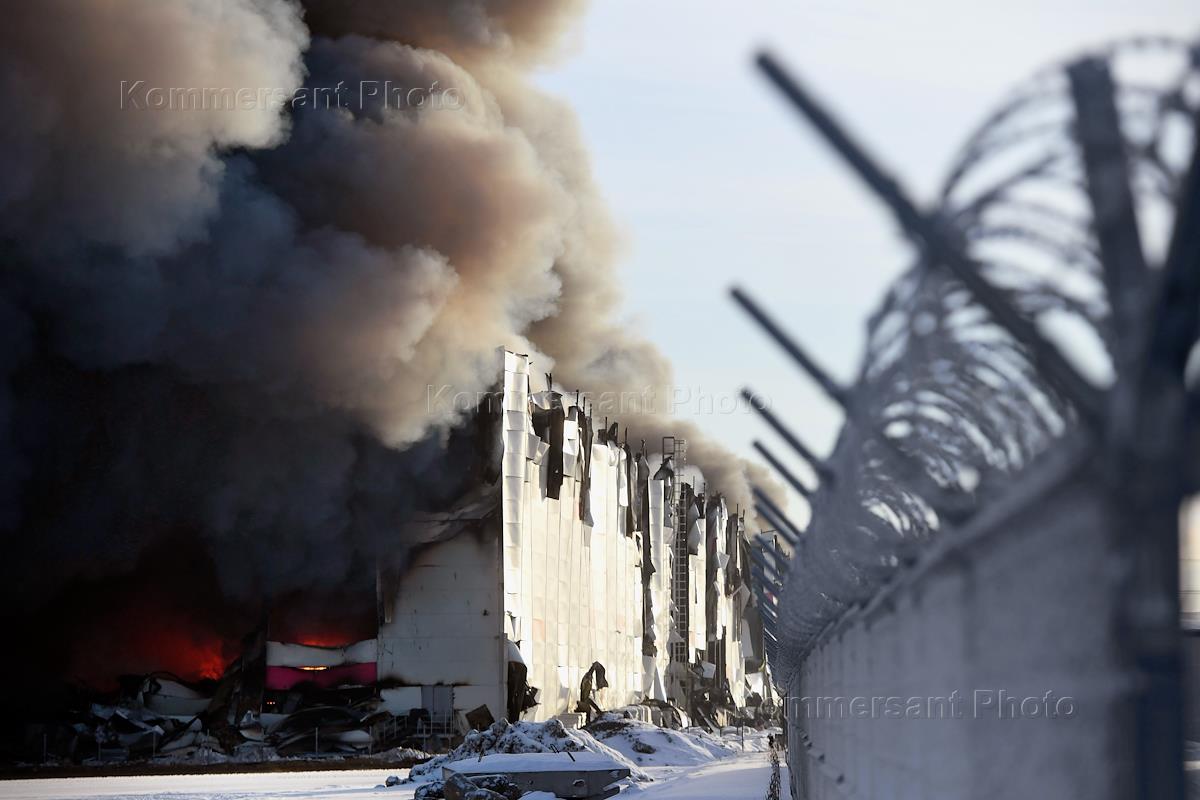 Fire at the warehouse of the Wildberries company in the village of Shushary on Moskovskoye Highway,…