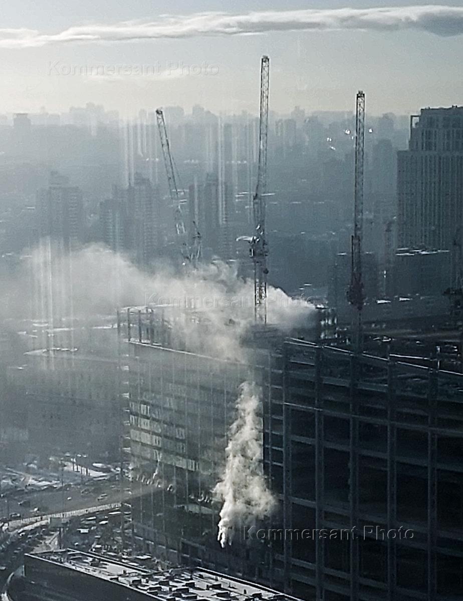 Пожар в строящемся здании рядом с офисом Сбербанка на Кутузовском проспекте.