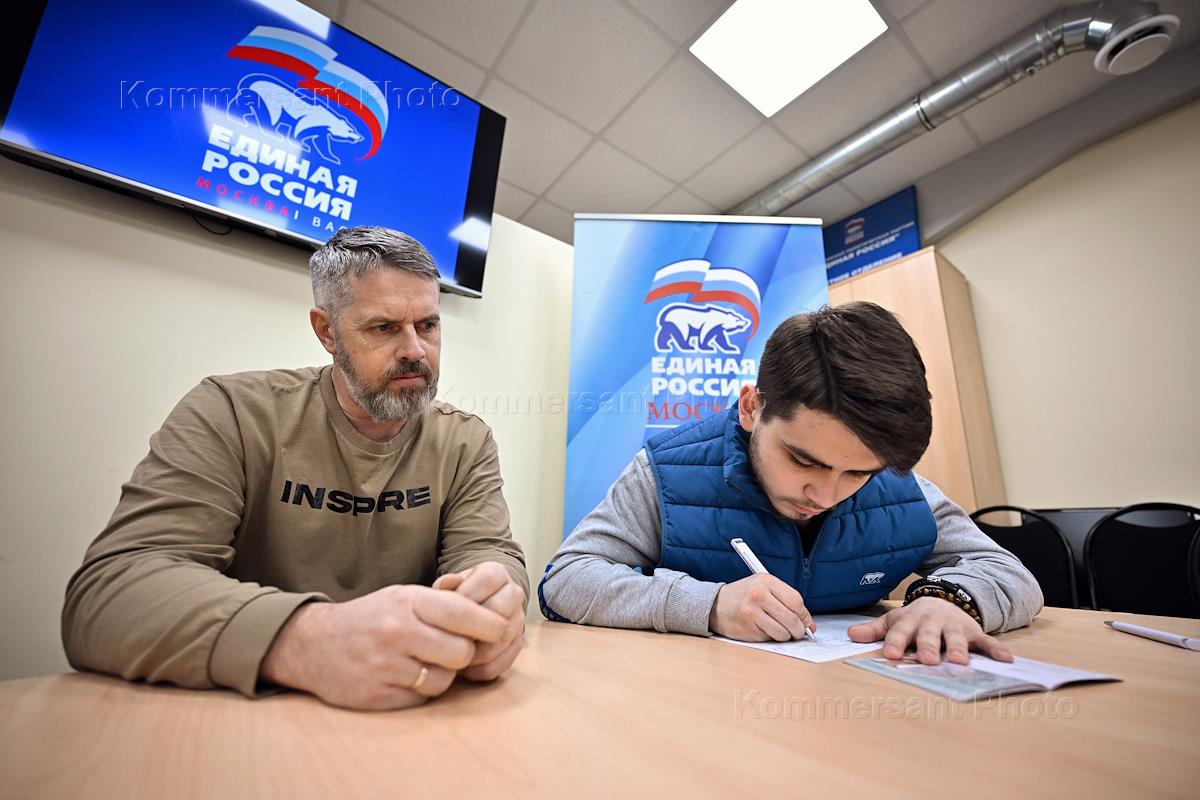 Политика Единый день сбора подписей в поддержку самовыдвижения кандидатом в президенты России действующего главы государства Владимира Путина в офисе партии "Единая Россия".