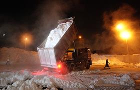 Жанровая фотография. Специальная техника коммунальных служб города во время выгрузки снега после…