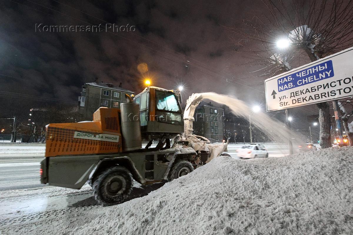 Жанровая фотография. Сотрудники коммунальных служб города во время уборки снега с улиц города на…