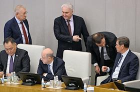 Пленарное заседание Государственной думы (ГД) России. Слева направо: председатель комитета ГД России…
