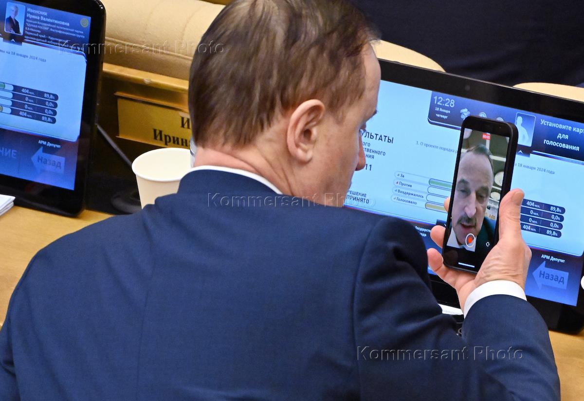 Пленарное заседание Государственной думы (ГД) России. Слева направо: заместитель руководителя…