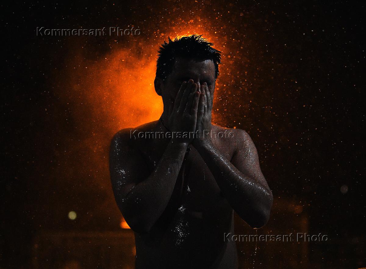 Праздник Крещения Господня. Крещенские купания в Большом Воронцовском пруду. Священнослужитель во…