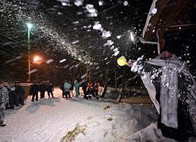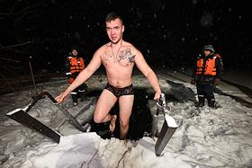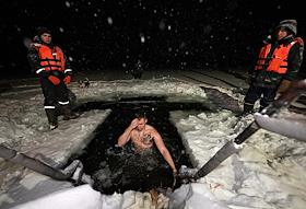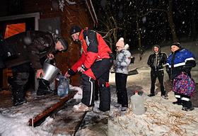 Праздник Крещения Господня. Крещенские купания в проруби пруда в усадьбе Сенницы.