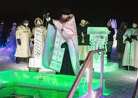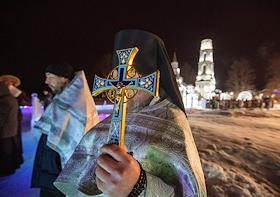 Праздник Крещения Господня. Крещенские купания на берегу Раифского озера. Священнослужители во время…