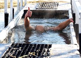 Праздник Крещения Господня. Крещенские купания в проруби на реке Обь.
