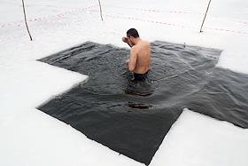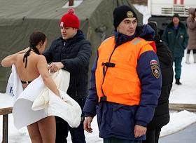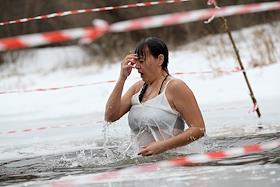 Праздник Богоявления (Крещение) Господня. Крещенские купания в "Рекреационной зоне "Ерик Верблюд" в Волгоградской области.