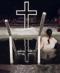 Праздник Крещения Господня. Крещенские купания в проруби реки Ижора у Свято-Троицкого Собора.