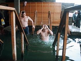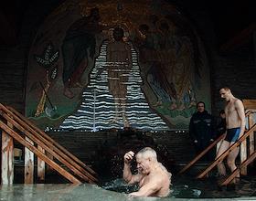 Праздник Крещения Господня. Крещенские купания в купели, на территории Главного храма Южного военного округа.