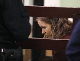 Правосудие Обвиняемая в совершении теракта в кафе на Университетской набережной, в результате которого погиб военкор Владлен Татарский (Фомин), Дарья Трепова на выездном заседании Второго Западного окружного военного суда в Петербурге.