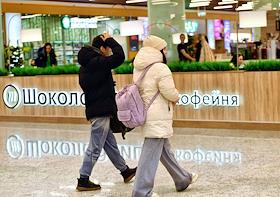 Жанровая фотография. Торговый центр "Щёлковский". Посетители у кафе "Шоколадница" в центре.