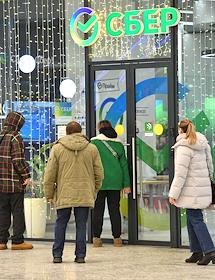 Жанровая фотография. Торговый центр "Щёлковский". Отделение "Сбер банка" в центре. Посетители в…