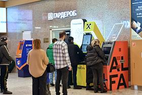 Жанровая фотография. Торговый центр "Щёлковский". Посетители у банкоматов в центре.