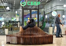 Жанровая фотография. Торговый центр "Щёлковский". Отделение "Сбер банка" в центре. Посетители в…