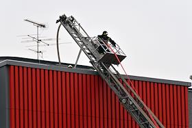 Пожар в здании Театра Сатиры на Триумфальной площади. Автомобиль пожарной части МЧС России во время…