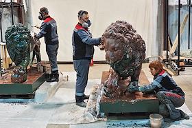 Реставрация скульптур львов с Адмиралтейской набережной в реставрационной мастерской «Наследие».