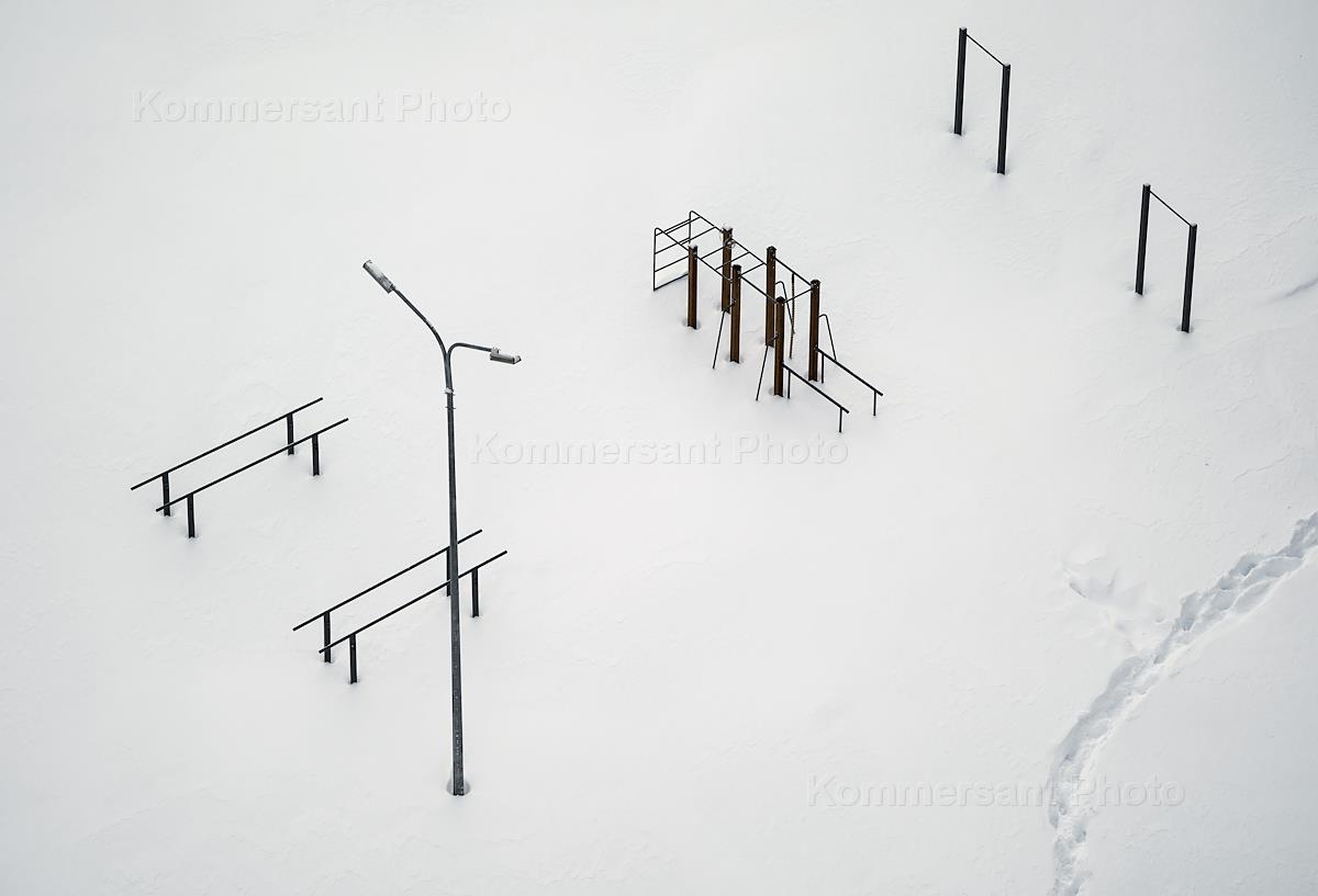 Виды Казани. Жанровая фотография. Турники на заснеженной спортивной площадке.