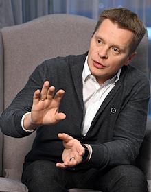 Директор департамента "Занять и сберегать" ПАО "Сбербанк" Сергей Широков во время интервью.
