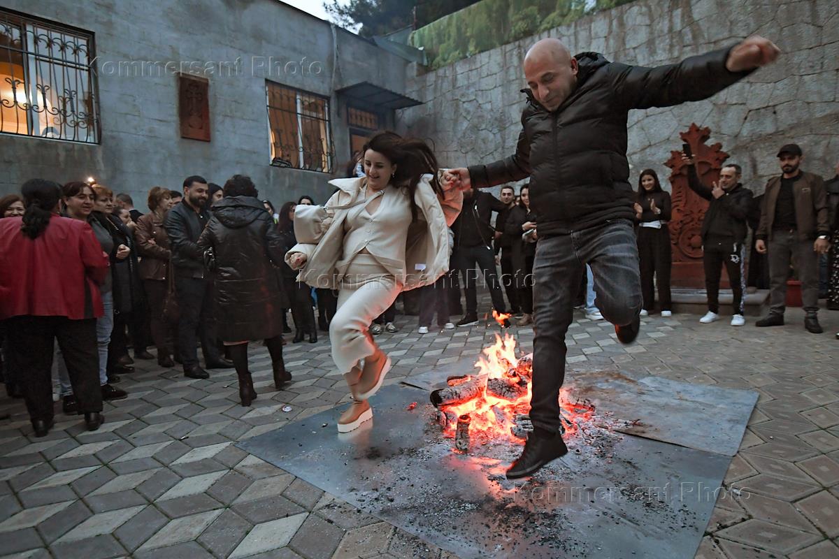 Празднование Терендез у церкви Святой Рипсиме в Ялте. Терендез - армянский традиционный праздник в честь Сретения Господня.