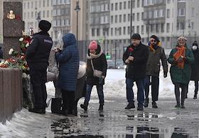 Ситуация возле стихийного мемориала в память об Алексее Навальном на Воскресенской набережной.