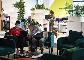 Работа головного офиса интернет-сервиса Avito ("Авито"). Жанровая фотография. Сотрудники в столовой…