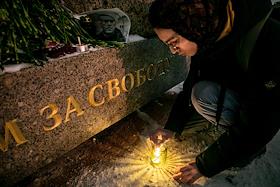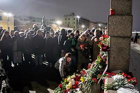 Возложение цветов к Соловецкому камню на Троицкой площади в день смерти оппозиционера Алексея…