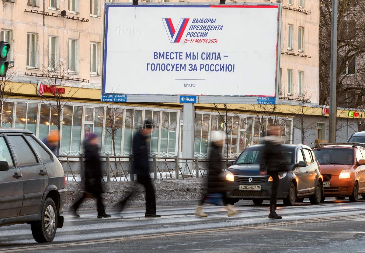 Виды Санкт-Петербурга во время агитационной кампании по выборам президента России. Предвыборная…