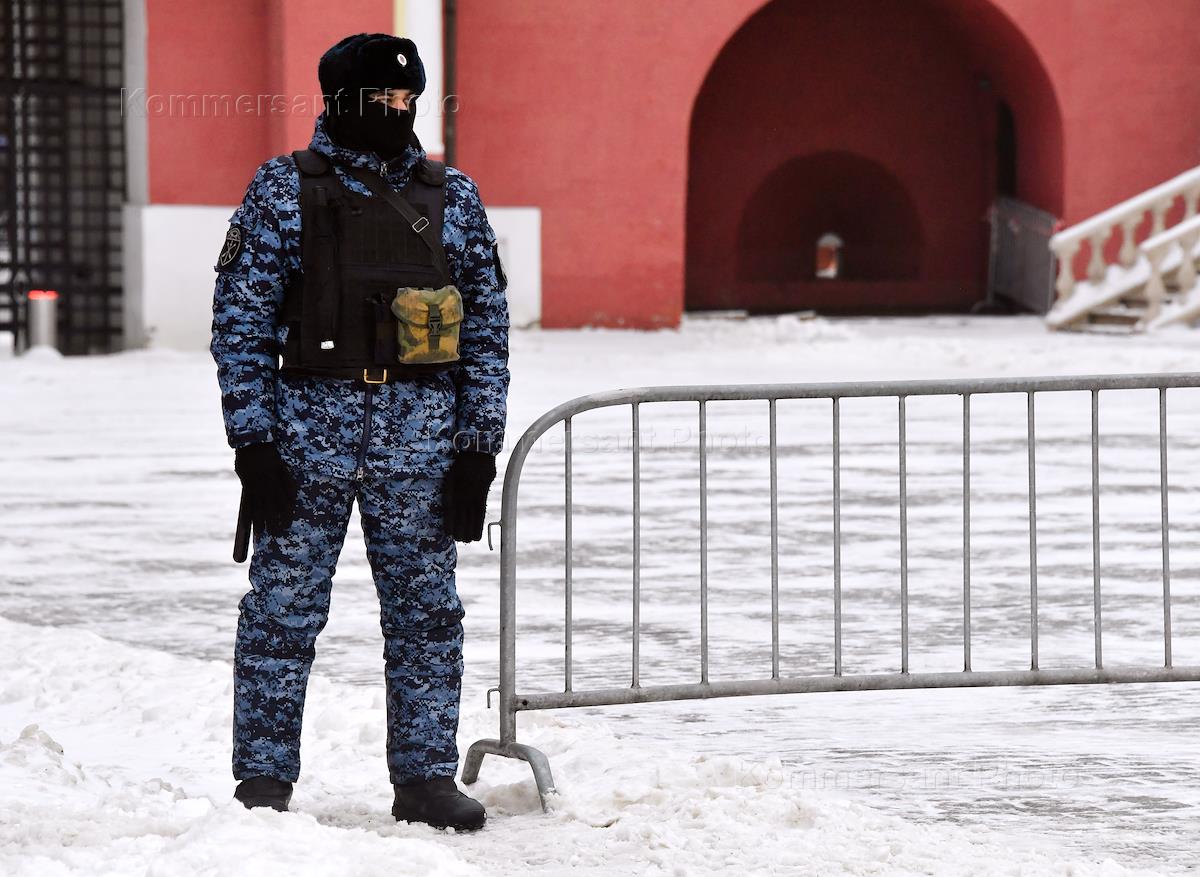 Виды Москвы. Жанровая фотография. Сотрудник Росгвардии во время дежурства на Красной площади у…