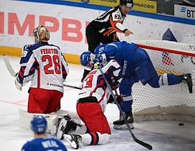 Континентальная хоккейная лига (КХЛ). Чемпионат сезона 2023/24. Матч между командами "Динамо" (Москва) - ЦСКА (Москва) на стадионе "ВТБ Арена".