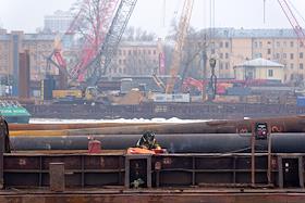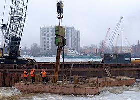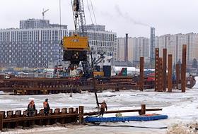 Экономика и бизнес Строительные работы в районе возведения разводного Большого Смоленского моста, который свяжет Большой Смоленский проспект и улицу Коллонтай.