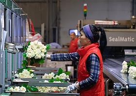 Тепличный комплекс "Новая Голландия" по выращиванию роз. Сотрудники во время сортировки и упаковки…