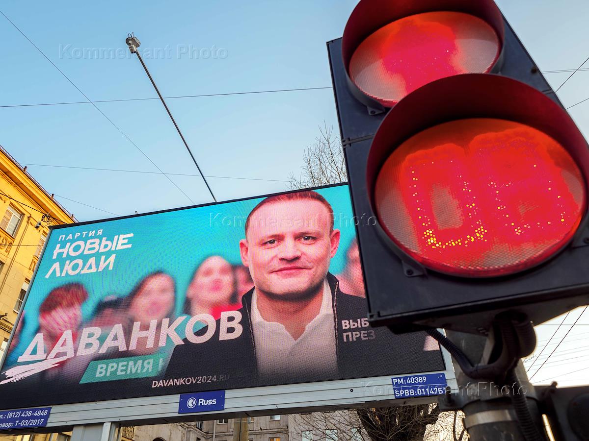 Предвыборная агитация на улица города. Жанровая фотография. Билборд кандидата в президенты от партии "Новые люди" Владислава Даванкова.