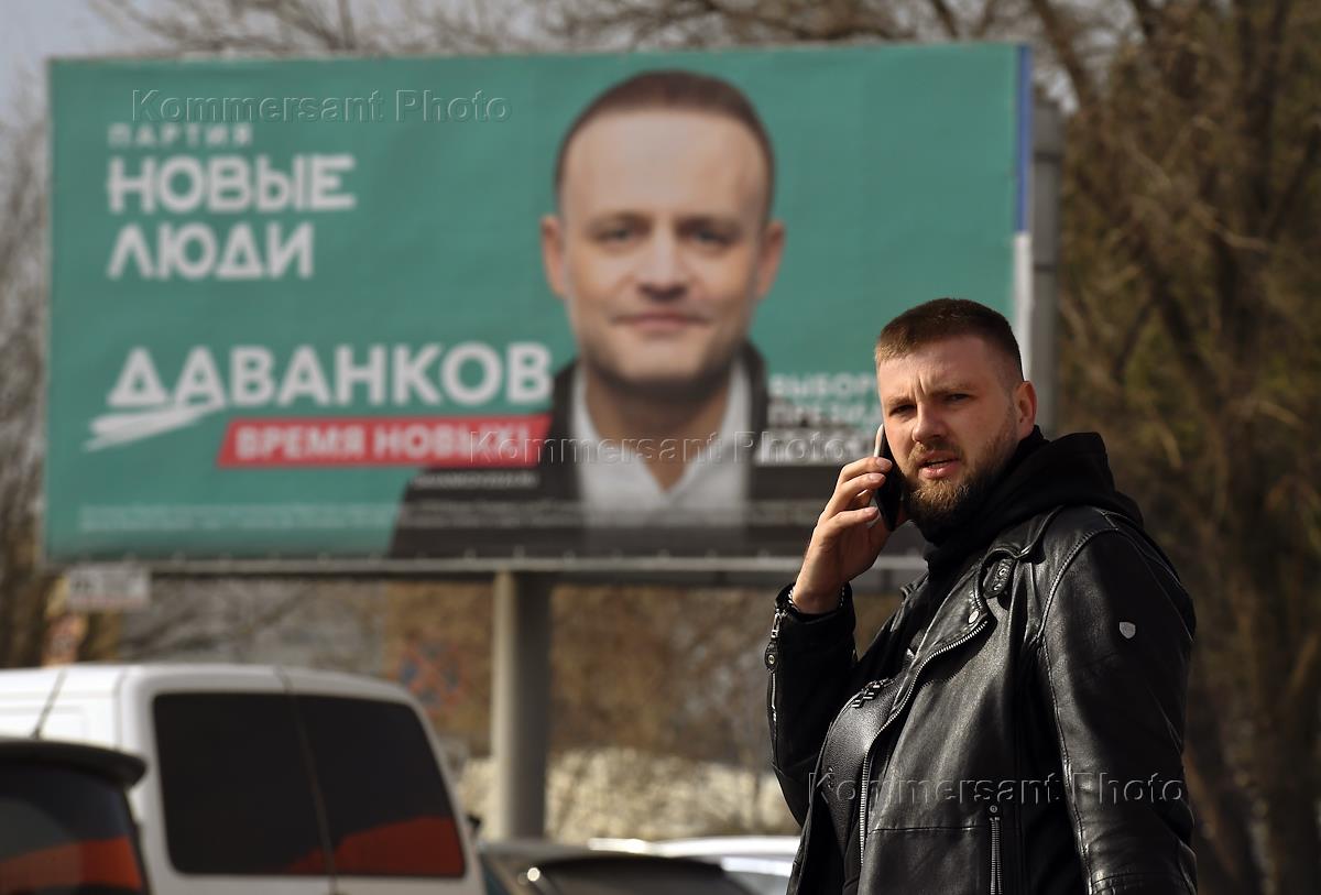 Предвыборная агитация к выборам президента России на улица города. Жанровая фотография. Рекламный…