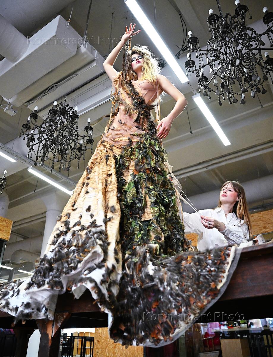 Жанровые фотографии. Подготовка студентов Московского художественно-промышленного института к участию в Московской неделе моды.