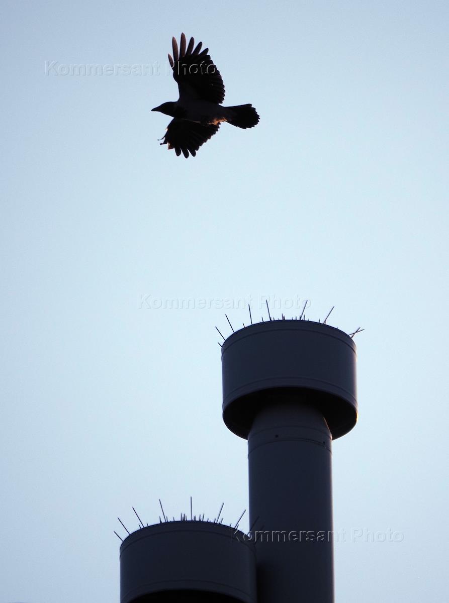 Жанровая фотография. Птица в небе над трубами.