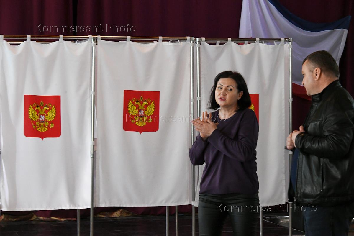 Выборы президента России. Подготовка избирательного участка №1173 в селе Перевальном к голосованию.…