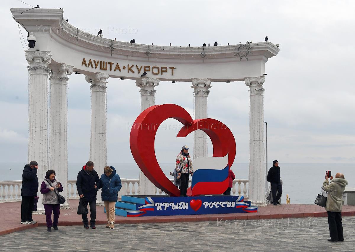 Виды Алушты. Жанровая фотография. Туристы на набережной города.
