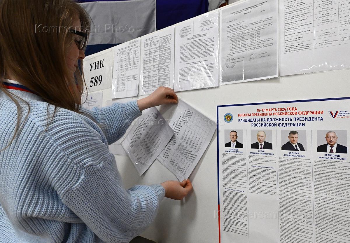 Выборы президента России. Члены участковой избирательной комиссии избирательного участка № 589 во…