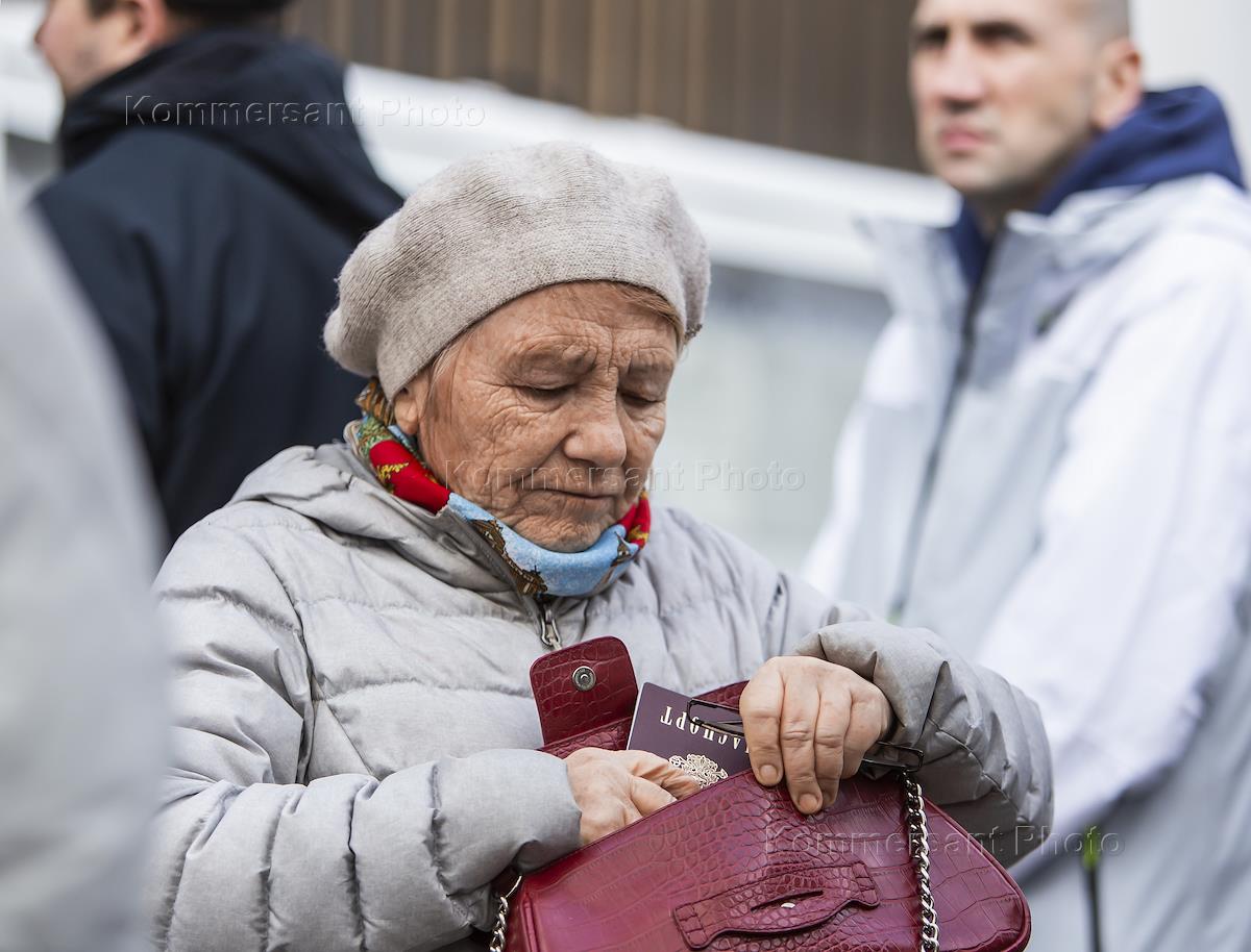 Выборы президента России. Избирательный участок в посольстве России в Кишиневе. Люди перед началом…