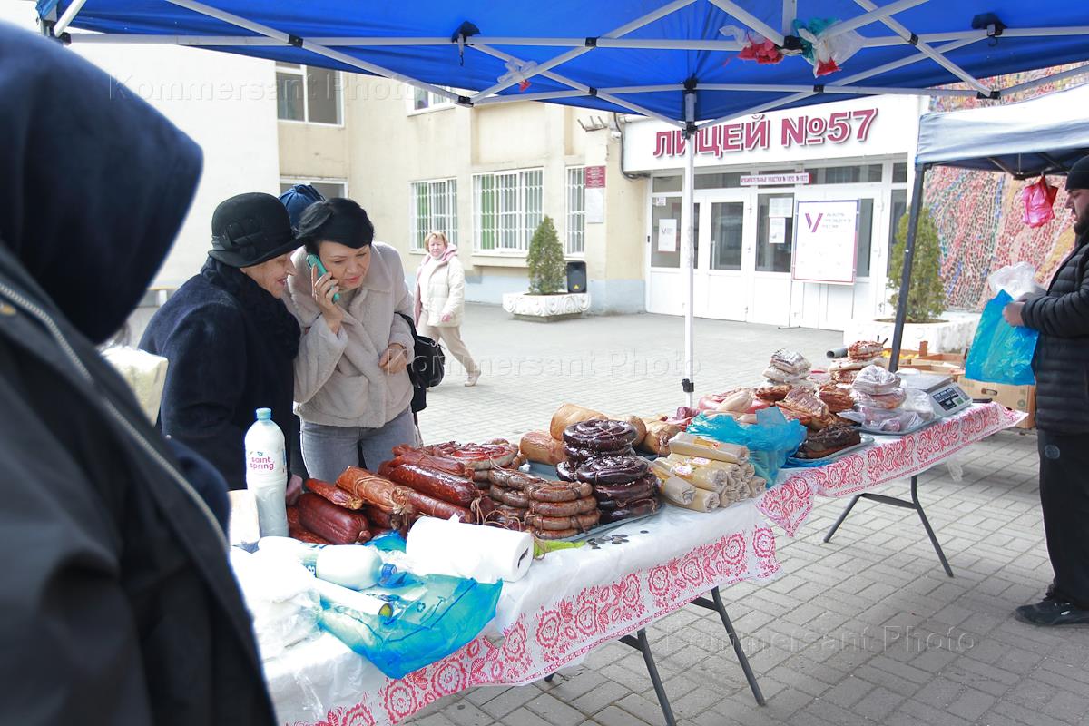 Выборы президента России. Третий день. Работа избирательного участка. Выездная продуктовая ярмарка у…