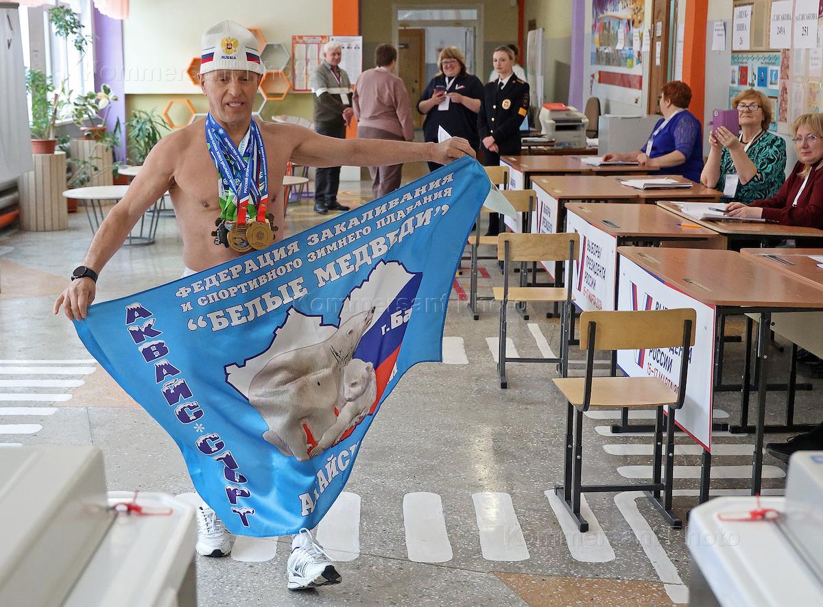 Выборы президента России в Барнауле. Работа избирательного участка. Президент Федерации закаливания…