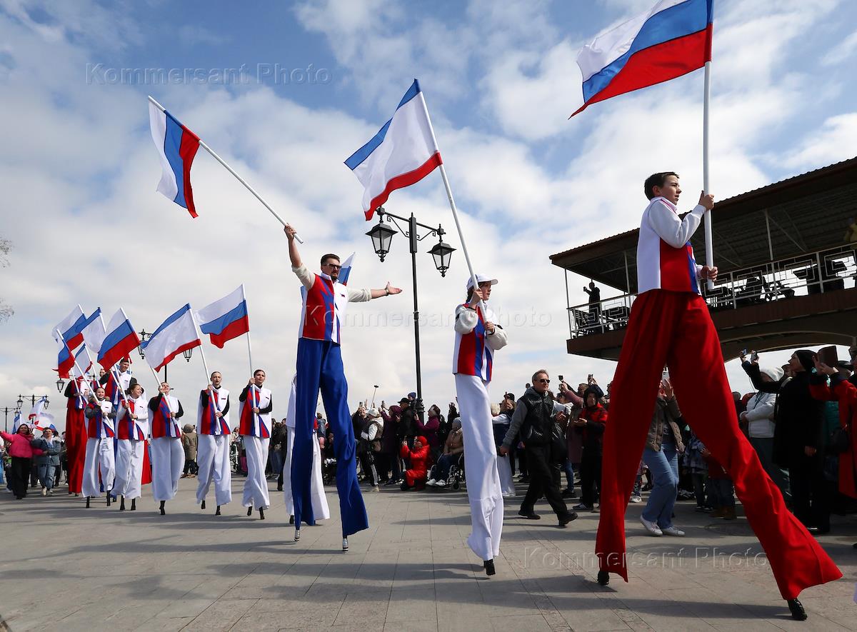 Досуг, туризм и отдых Участники театра на ходулях "Шоу великанов" на маршруте длиной 10 км по улицам города во время установления рекорда для Книги рекордов России.