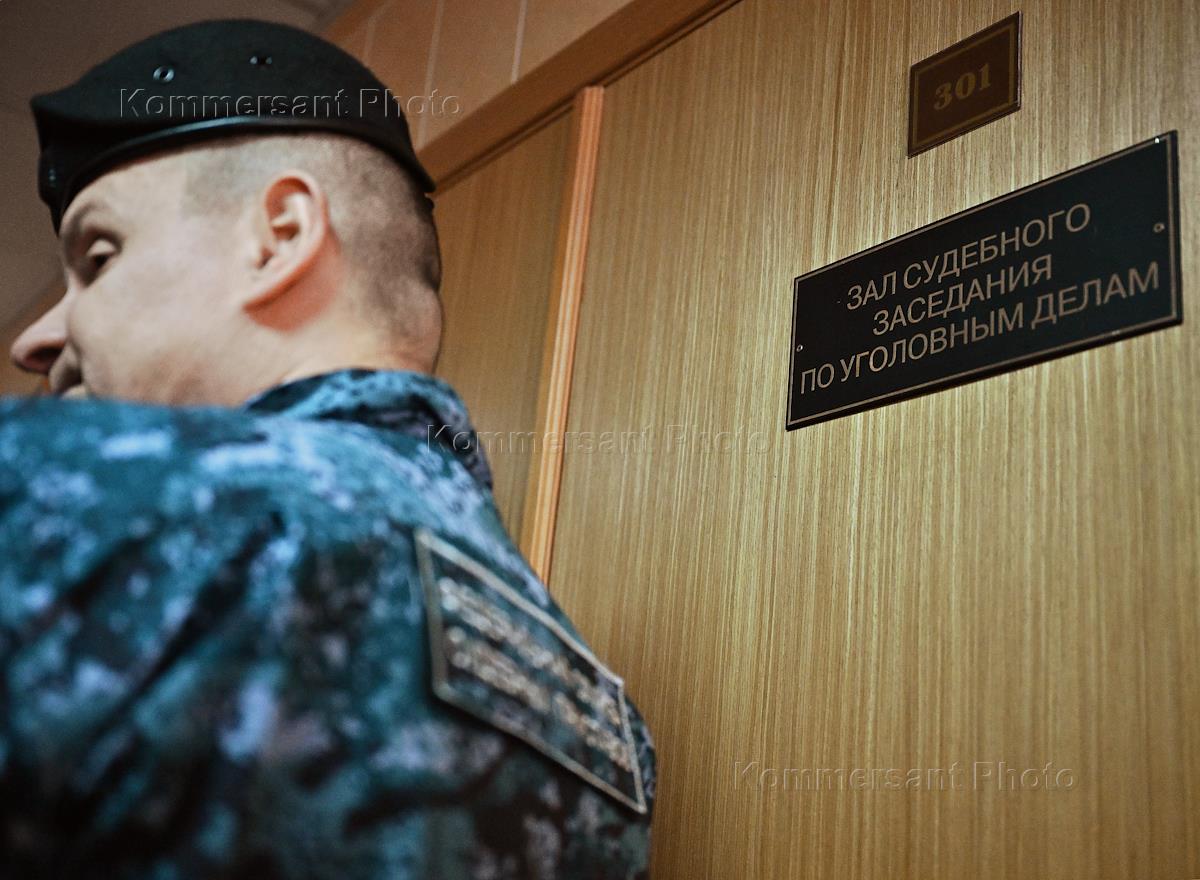 Жанровая фотография. Судебный пристав у входа в зал судебного заседания по уголовным делам в…