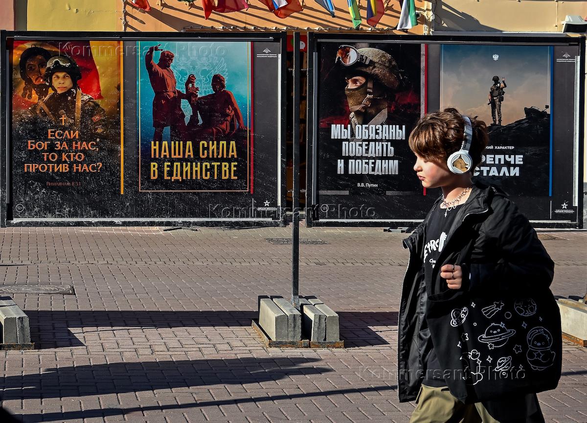 Серия плакатов на Старом Арбате, созданных художниками РИА «Армия России».