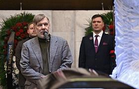 Церемония прощания со спортивным журналистом и футбольным комментатором Василием Уткиным в Центральной клинической больнице (ЦКБ) при президенте России.