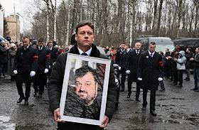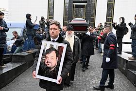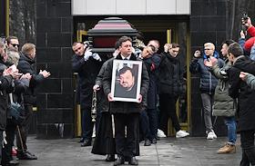 Церемония прощания со спортивным журналистом и футбольным комментатором Василием Уткиным в Центральной клинической больнице (ЦКБ) при президенте России.