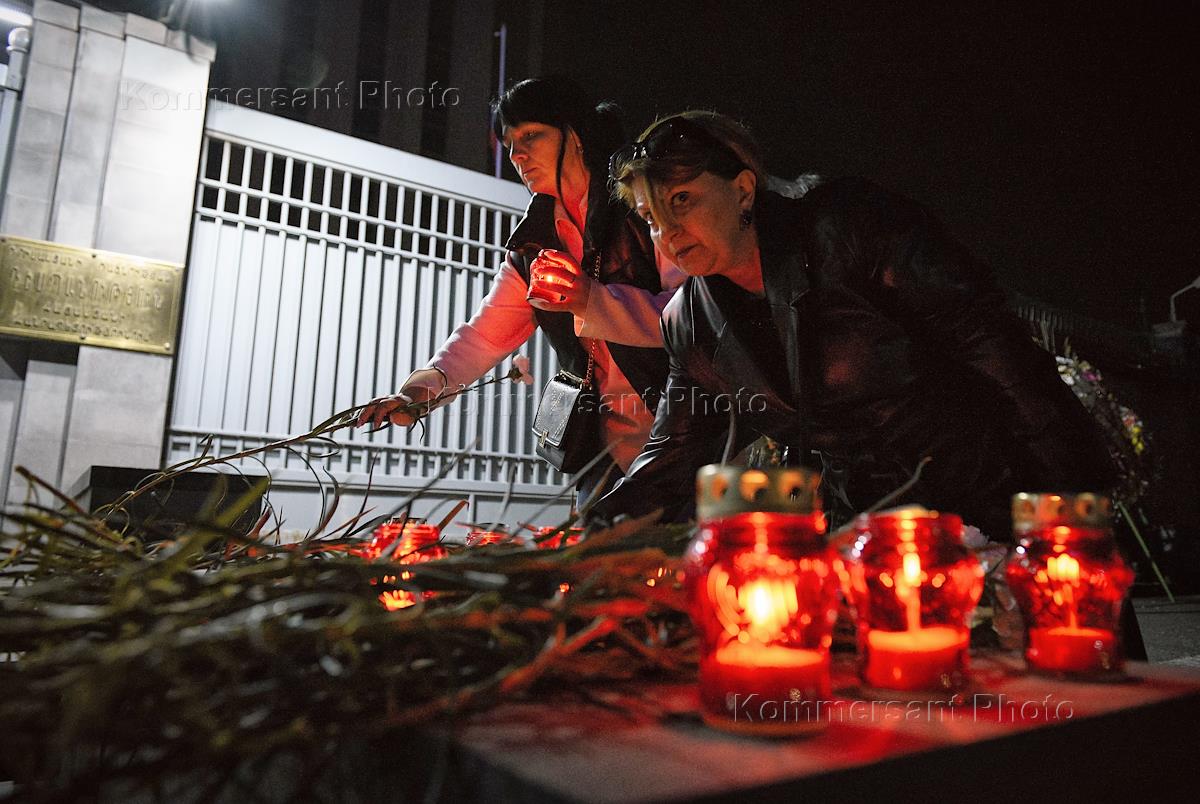 Акция движения «Вместе» в память погибших в «Крокус сити холл» у посольства РФ в Ереване.